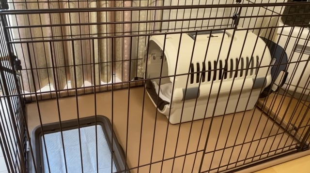 ですのでトイレとわんちゃんの普段のお部屋が別(もしくはお部屋の中にトイレスペースがある場合)は、トイレスペースに使うケージには可能であれば屋根はない方がいいかなと思います。